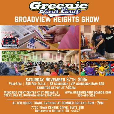 For more information please email us at CardShows@GreenieSportsCards.Com