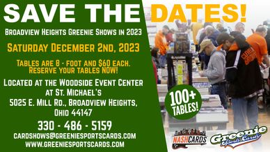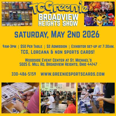 For more information and to reserve table space please email us at CardShows@GreenieSportsCards.Com